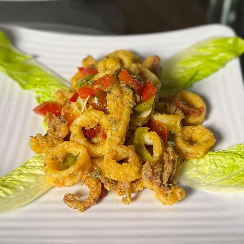 Fried Calamari Tossed in our Scarpariello White Wine Sauce with Hot & Sweet Cherry Peppers